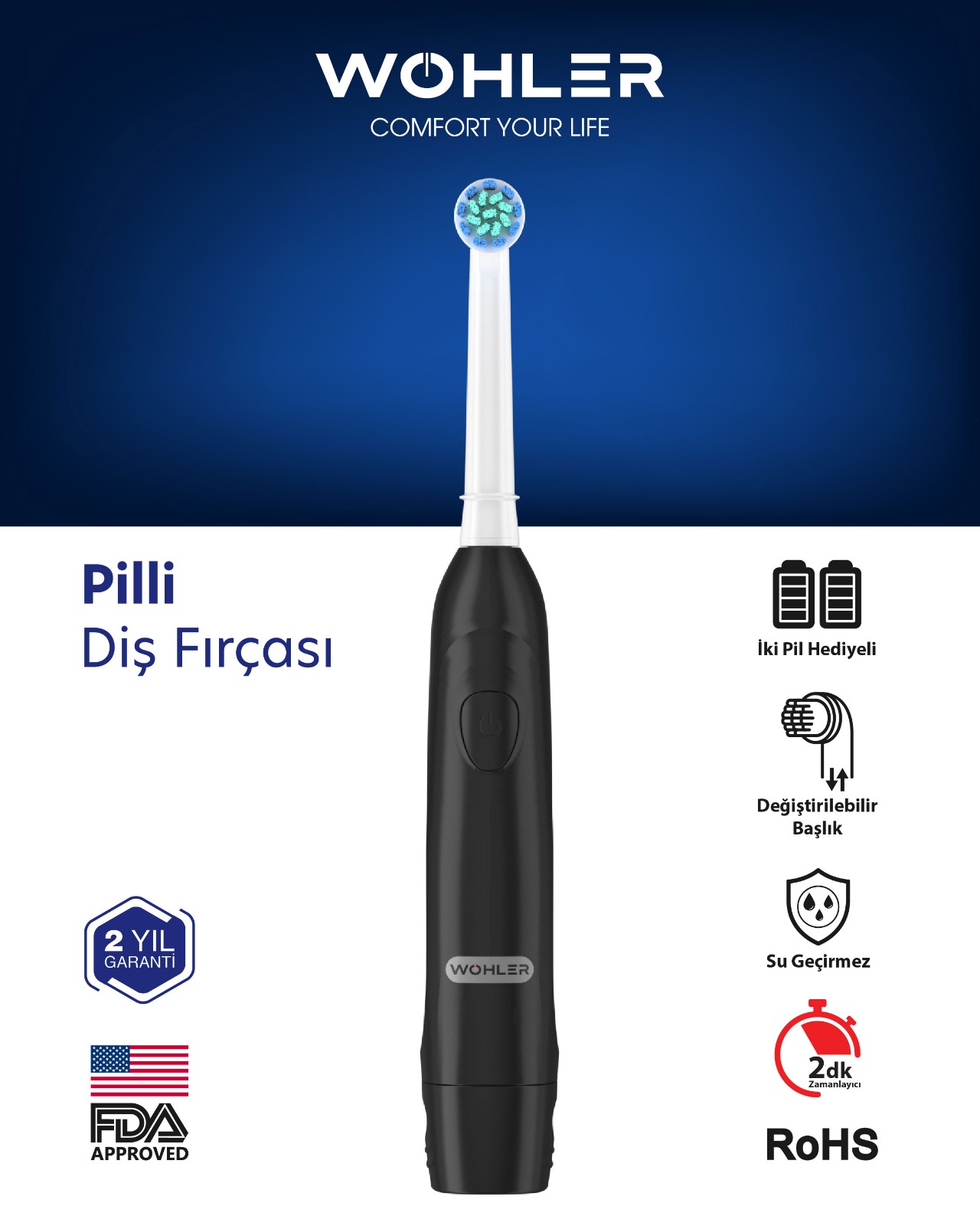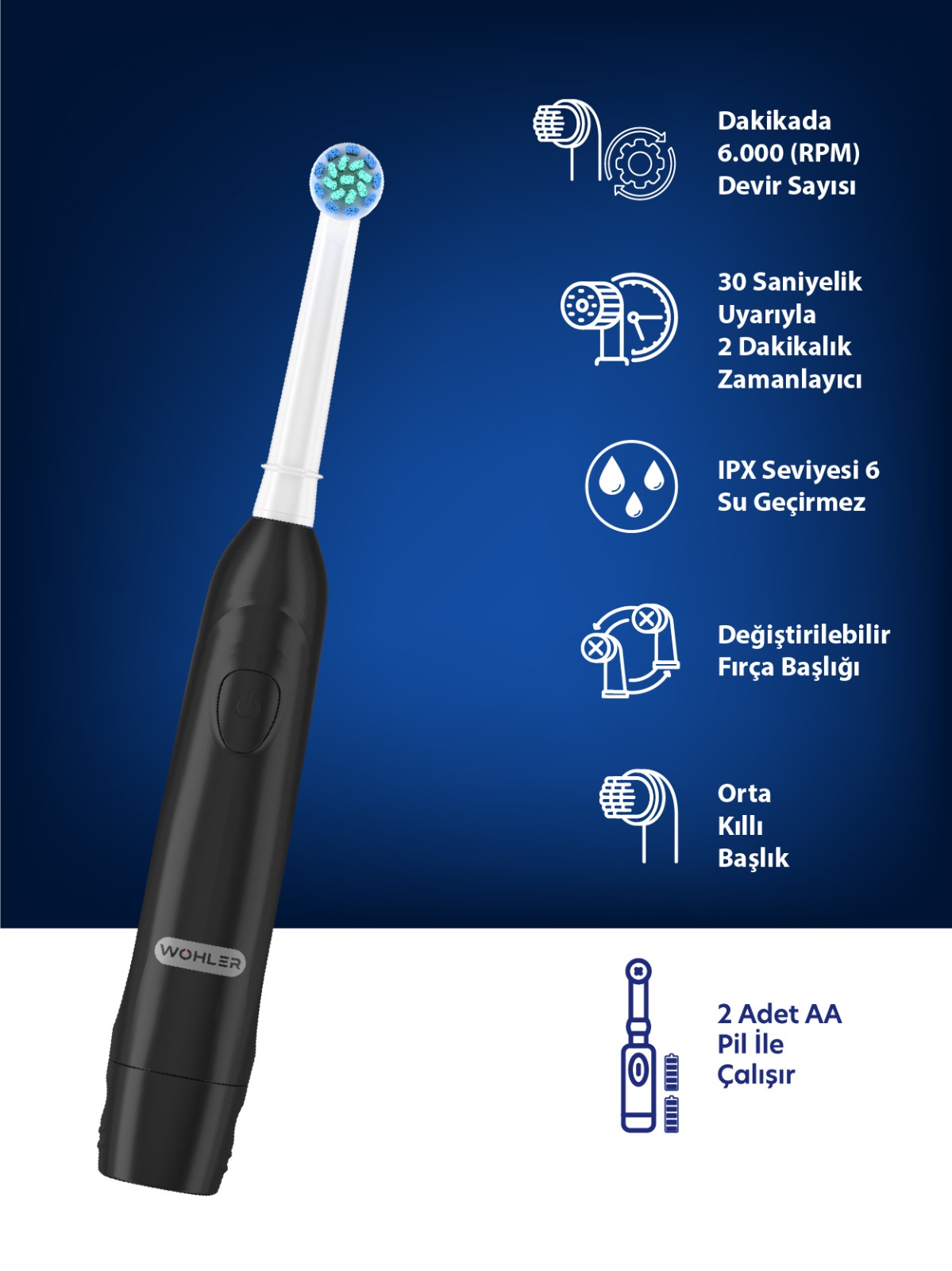 Wohler Değiştirilebilir Başlıklı Pilli Diş Fırçası Fda Onaylı