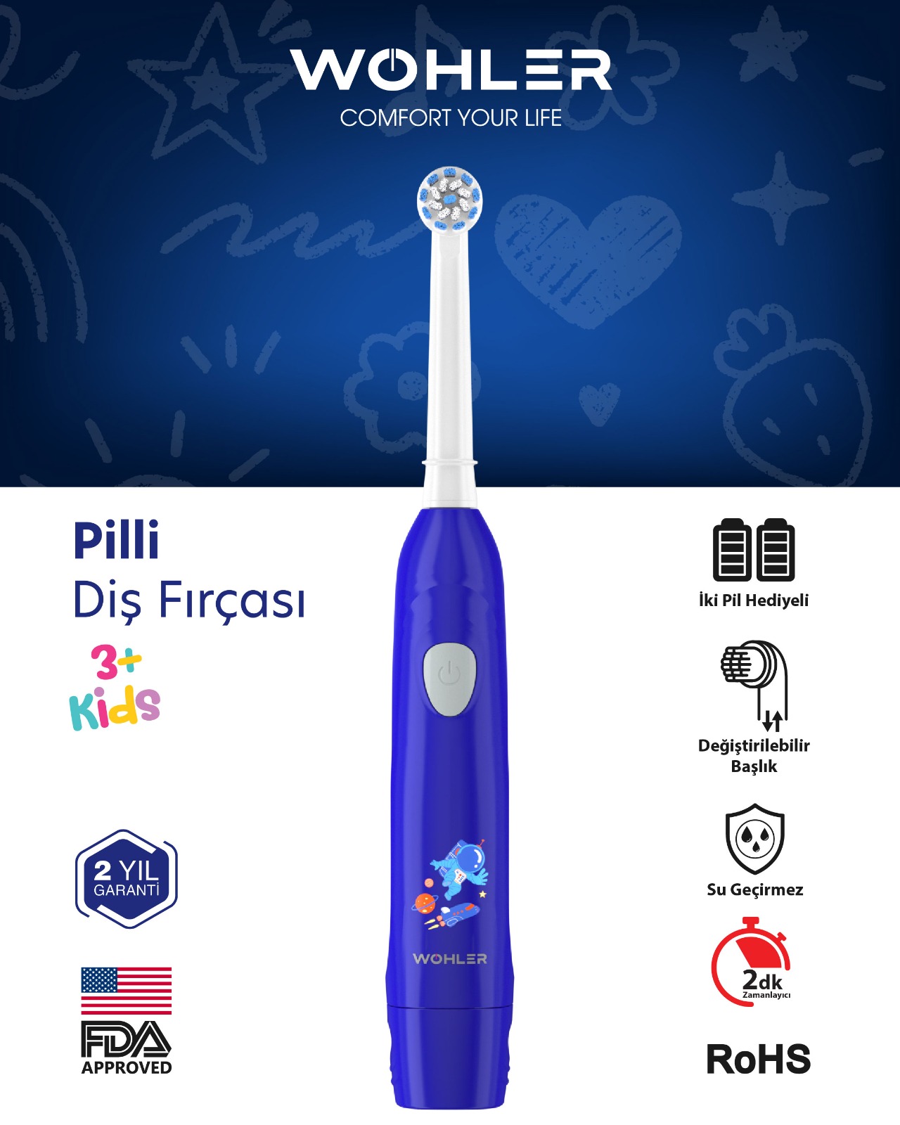 Wohler Değiştirilebilir Başlıklı Pilli Erkek Çocuk Diş Fırçası 3+ , Fda Onaylı