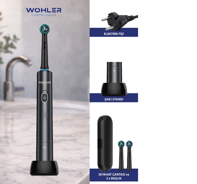 Wohler Değiştirilebilir Başlıklı Şarj Edilebilir Elektrikli Diş Fırçası – Siyah